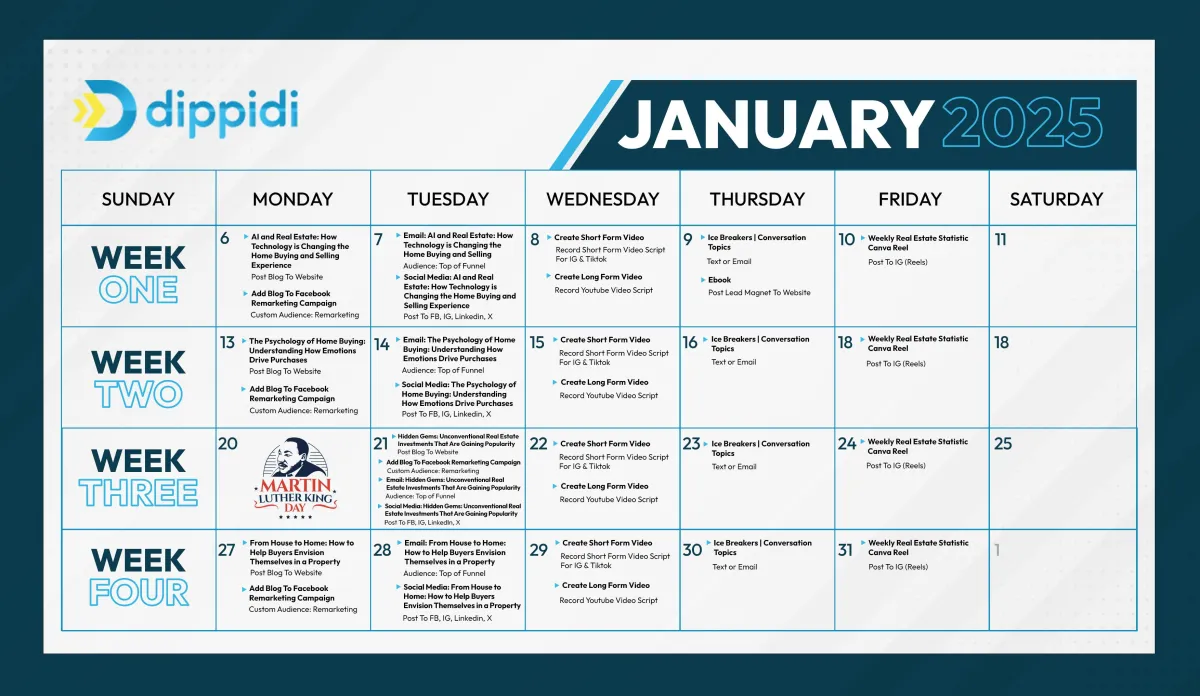 The dates provided are merely suggestions for when to carry out the activities. Feel free to choose any day of the week that suits you best for execution.