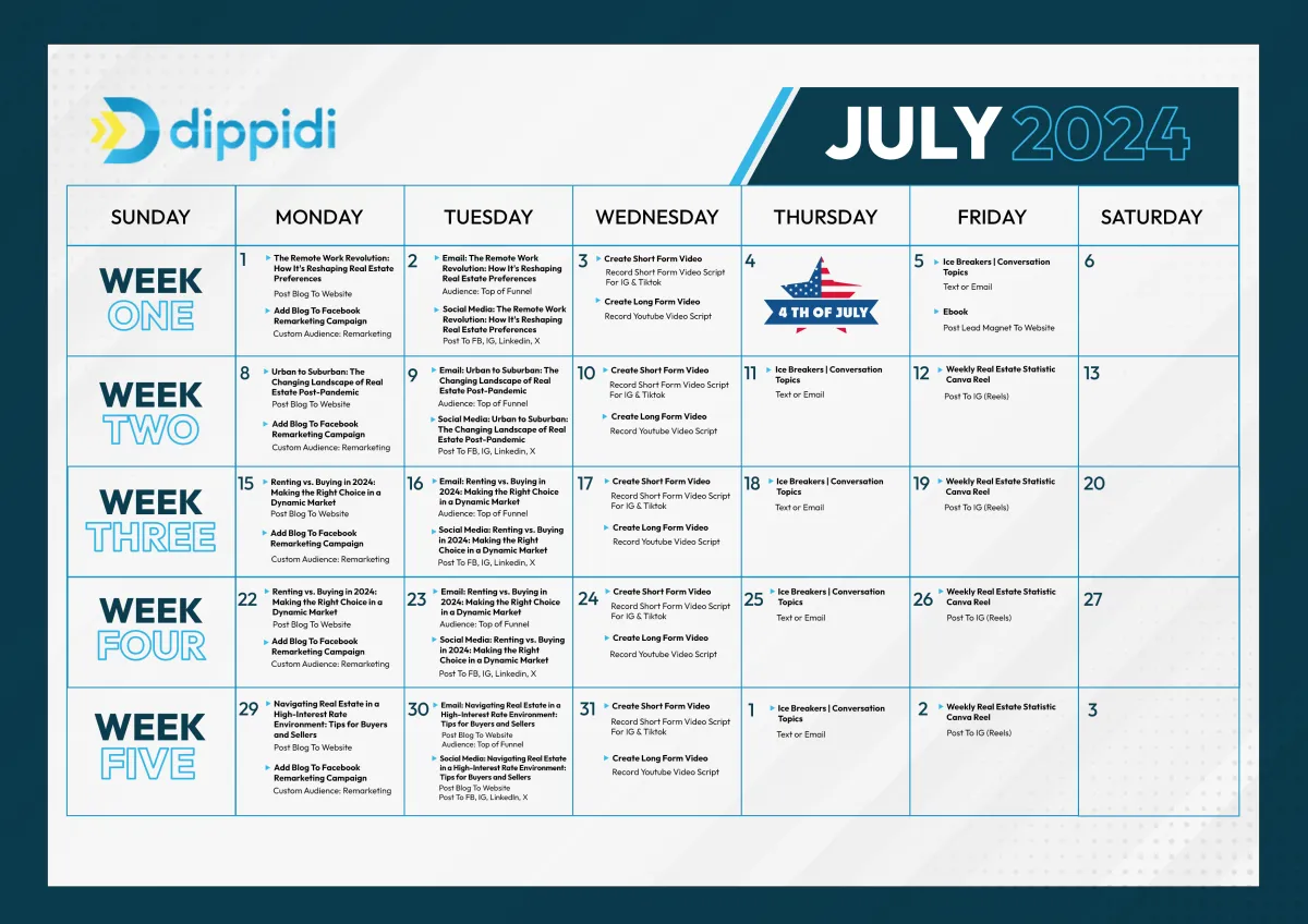 The dates provided are merely suggestions for when to carry out the activities. Feel free to choose any day of the week that suits you best for execution.
