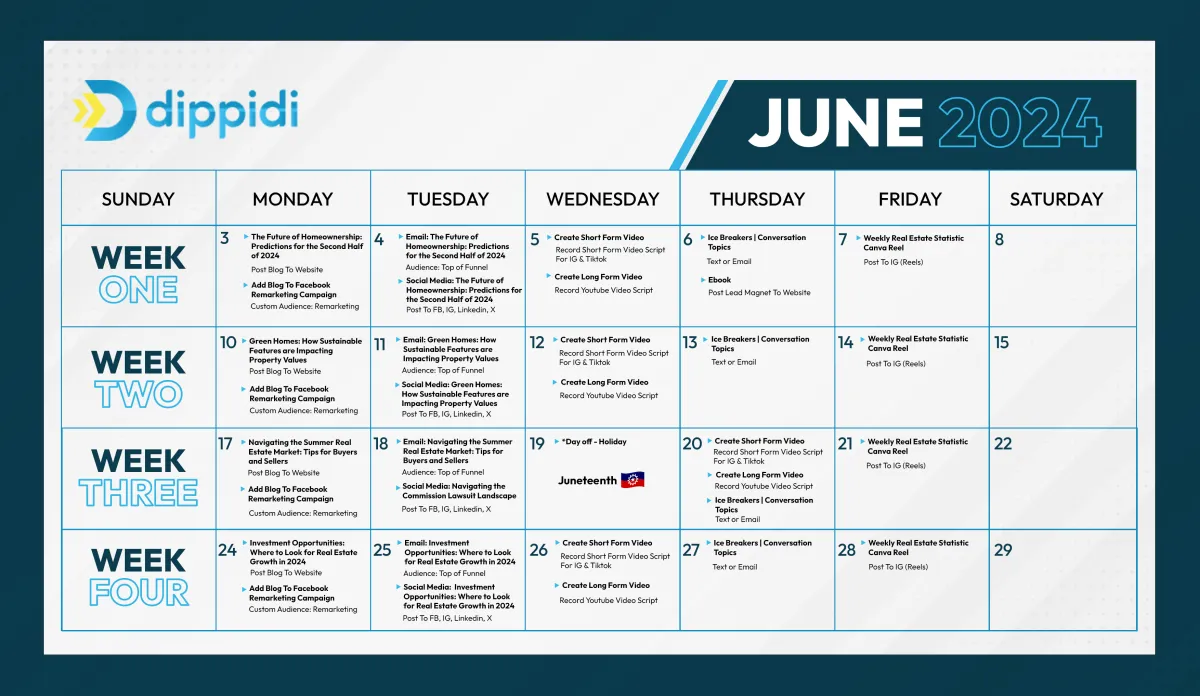 The dates provided are merely suggestions for when to carry out the activities. Feel free to choose any day of the week that suits you best for execution.