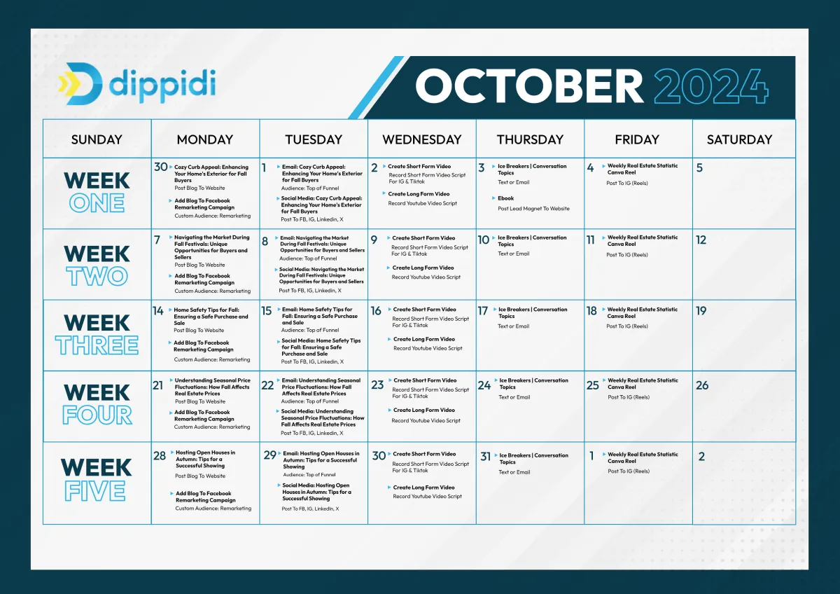The dates provided are merely suggestions for when to carry out the activities. Feel free to choose any day of the week that suits you best for execution.