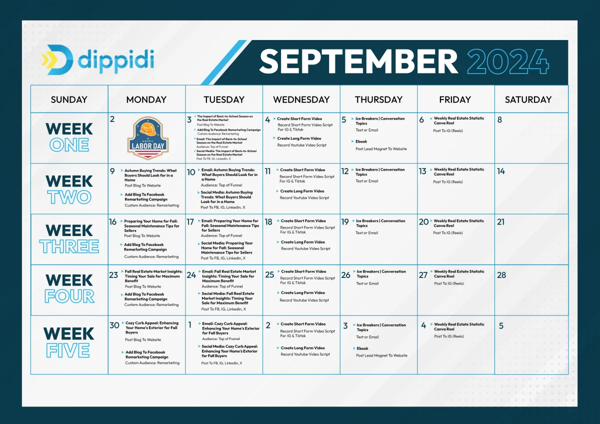 The dates provided are merely suggestions for when to carry out the activities. Feel free to choose any day of the week that suits you best for execution.
